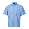 Matching blue stitching Tortoiseshell buttons Wash 'n' wear design, button down collar on men's shirt.