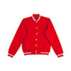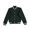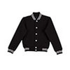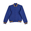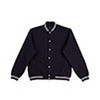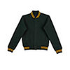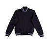 Description: Heavy ribbed collar, cuffs & waist band with contrast strips. Two front welt pockets. Press studs front closure.