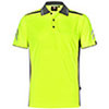 Unisex mini waffle trim fluoro polo with contrast panels, cool vent across back shoulder yoke, reflective piping and sleeve V sashes, zip pocket and striped collar.