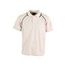 Description: Breathable diamond knitted fabric. Short raglan sleeves. Contrast piping on raglan sleeve seams and on collar.