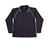 Description: Breathable diamond knitted fabric. Long raglan sleeves. Contrast piping on raglan sleeve seams and on collar.