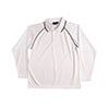 Description: Breathable diamond knitted fabric. Long raglan sleeves. Contrast piping on raglan sleeve seams and on collar.